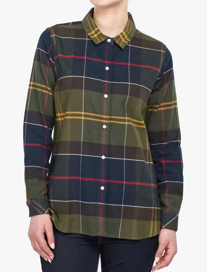 Barbour Anna Shirt on klassisella tartan kuviolla oleva paita jossa on väljä mitoitus. Se on monikäyttöinen, sitä voidaan käyttää auki tai suljettuna. Paidan sisäpuoli on erittäin pehmeää harjatua puuvillaa.
