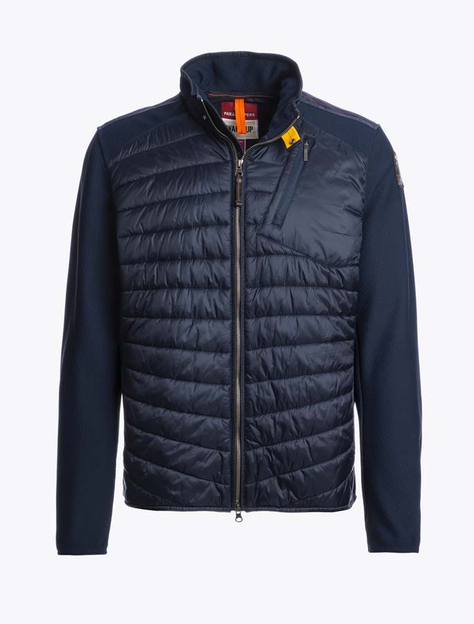 Italialaisen Parajumpers tuotemerkin miesten Warm-Up-sarjan rento, sporttinen ja monikäyttöinen pusakka erilaisiin vapaa-ajan menoihin. Takki on valmistettu kahdesta erityyppisestä materiaalista. Pääosa on valmistettu kiiltävästä polyesteri taffetasta ja loput hunajakennomaisesta joustavasta polyesteri/elastaani -sekoitteesta.