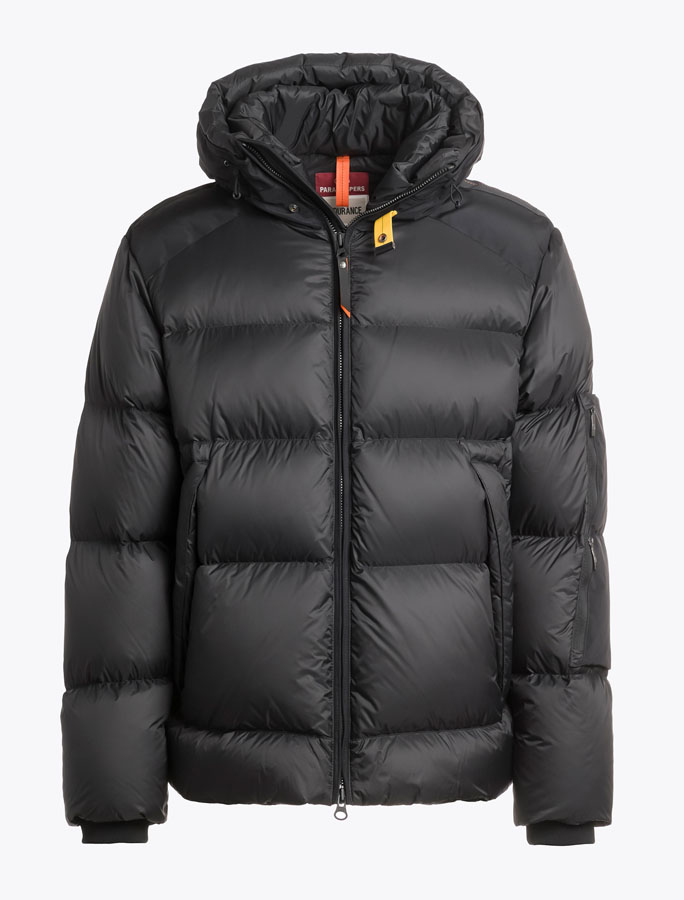 Italialaisen Parajumpers tuotemerkin puffer tyyppinen paksu, mutta kevyt hupullinen untuvatakki. Lämmin ja tyylikäs valinta talvikeleille.