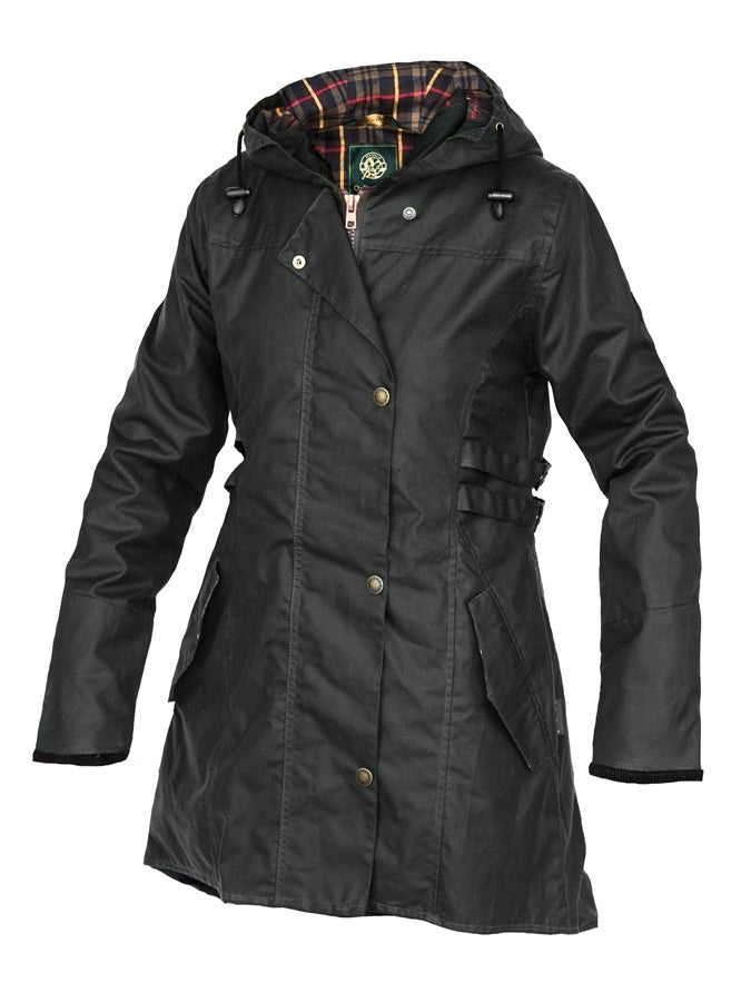 Englantilaisen Oxford Blue vaatevalmistajan naisten puolipitkä hupullinen öljykangastakki. Oxford Blue takin kangas on laadukasta vettähylkivää ja tuulta pitävää öljykäsiteltyä puuvillakangasta, vuori on countryhenkistä ruutukangasta. Takin takaosa on pidennetty ja sivuilla on neppareilla toimivat säätöremmit istuvuuden lisäämiseksi. Klassinen öljykangastakki on tuulisen ja sateisen päivän takki keväästä syksyyn.