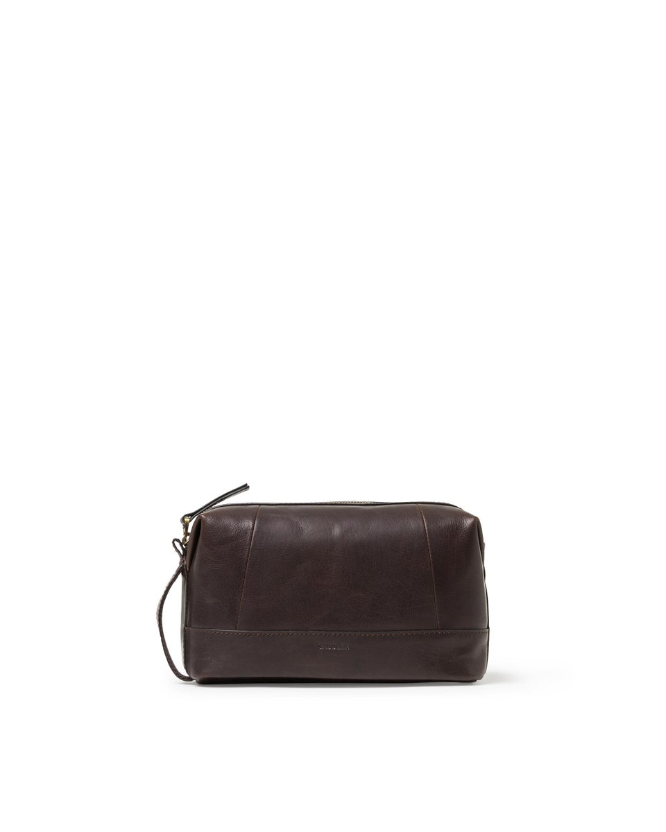 Saddler Cay on käytännöllinen ja kestävä toiletlaukku. Se on valmistettu korkealaatuisesta nahasta ja avautuu yhdellä isolla vetoketjulla. Sisäpuolella on tumma nylon vuori, joka on helppo pitää puhtaana, sekä kolme slip-in taskua. Vetoketju on metallinen ja ulkopuolelta löytyy lisäksi kantokahva.