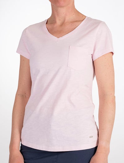 Ruotsalaisen Marine Classics tuotemerkin Livia t-paita v-kaula-aukolla ja rintataskulla. Marine Classics kokoelmat on suunniteltu Ruotsissa selkeällä suunnittelufilosofialla – mukavat vaatteet, joita merimaisema inspiroi.