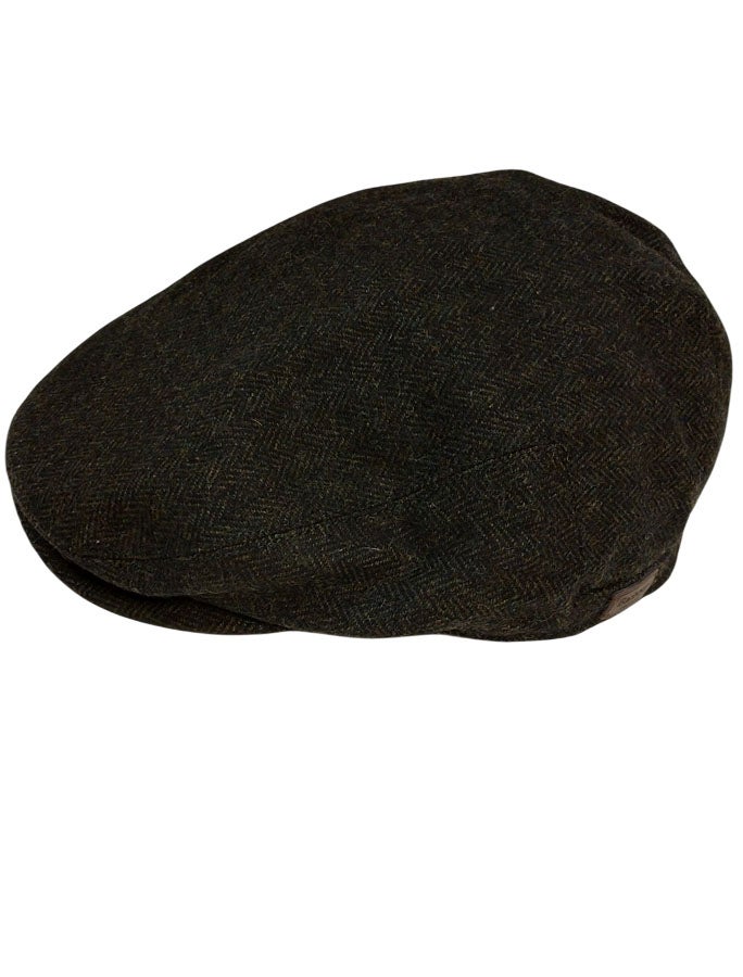 Barbour Barlow Flat Cap on perinteinen brittiläisen country-tyylin mukainen hattu, jossa on villasekoitteinen ulkopinta ja täysin vuorattu sisäpuoli mukavuuden takaamiseksi. Nahkainen Barbour-merkki toisella sivulla.